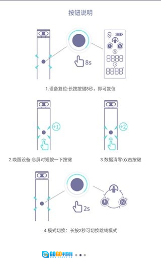 2、智能绳的按钮说明。