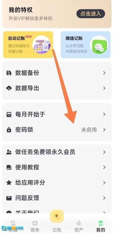 点击"密码锁"图标向右箭头,如图所示。