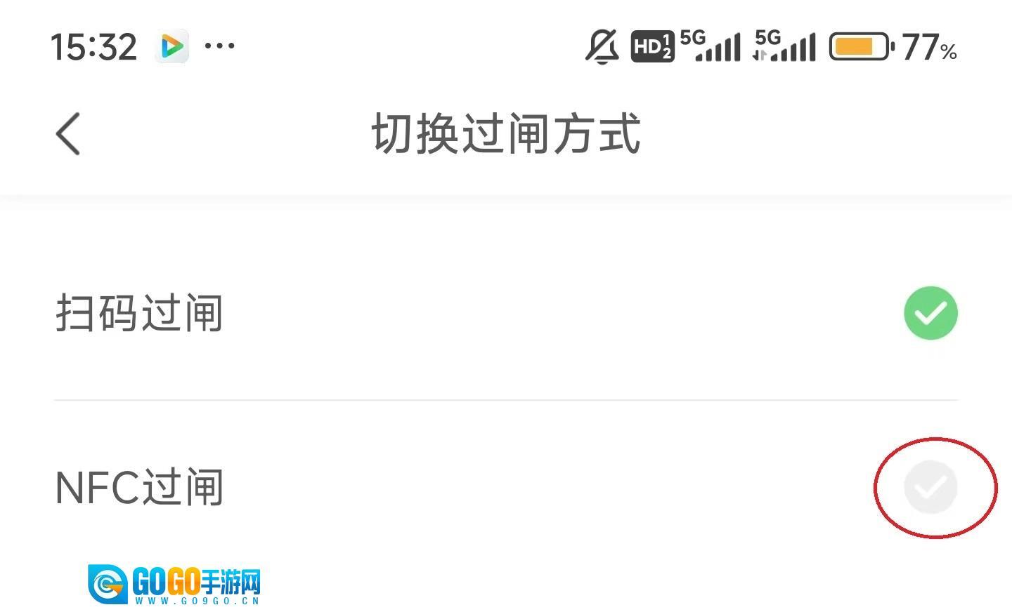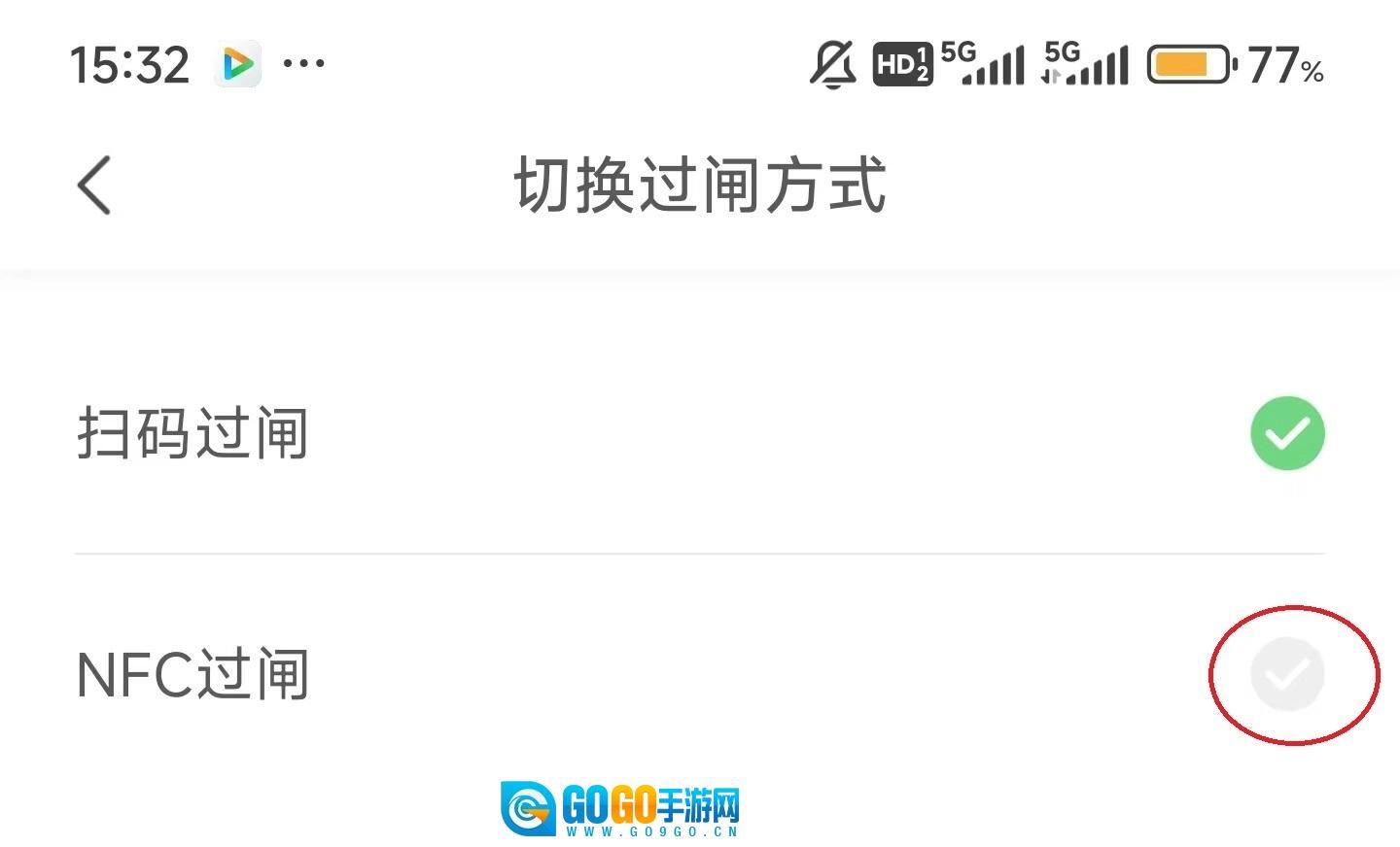 4、随后点击“NFC过闸”的右侧。