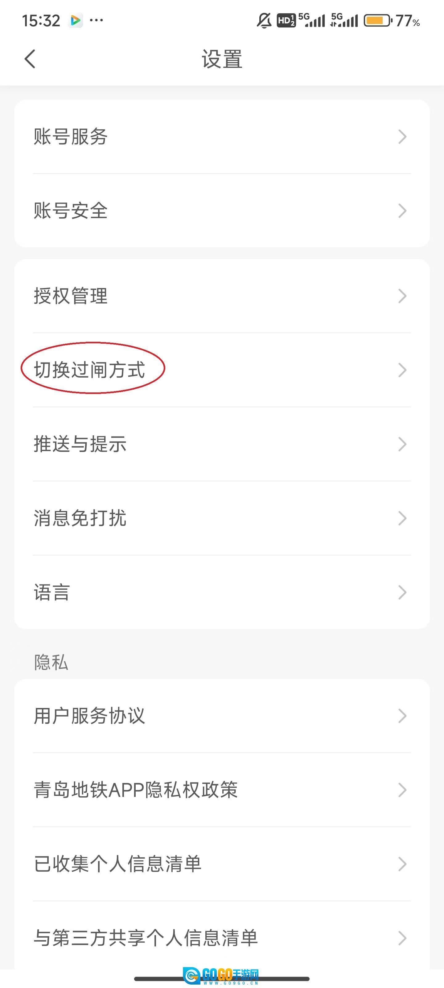 3、点击“切换过闸方式”。
