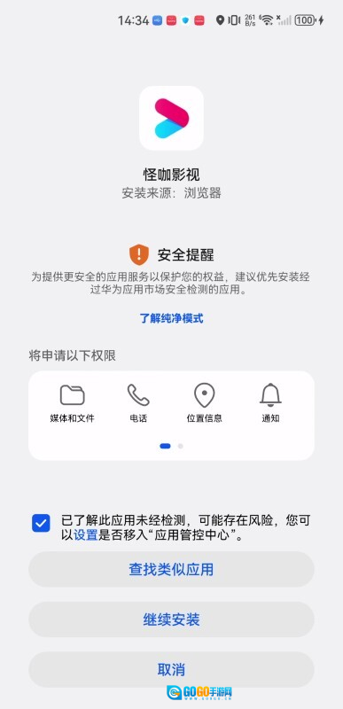 3、接下来勾选“已了解此应用未经检测……”这一项,然后点击“继续安装”按钮。(也可以点击查看纯净模式的相关信息)