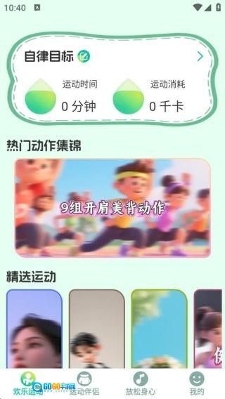 安装软件并打开后,进入欢乐运动界面,既可以定制自律目标,也能查看热门动作集锦。