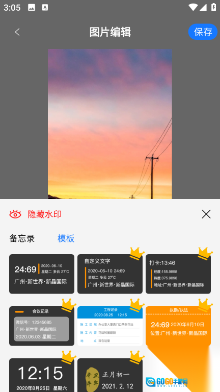 3、点击【水印】按钮,可选择自定义添加水印或使用模板添加水印,预览效果后保存操作即可完成。