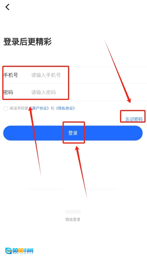 2、进入登录页面后,根据页面提示,在对应的输入框中分别填写你注册时使用的手机号,以及之前设置好的登录密码,全部填写完毕后,点击登录按钮即可。