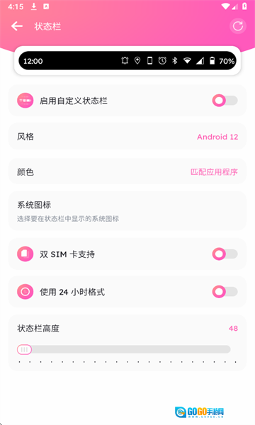 状态栏高度可调节:支持依据屏幕比例与视觉习惯对状态栏高度进行调整