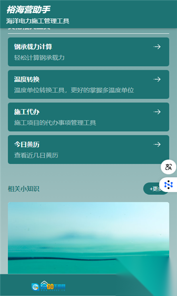 裕海营助手是专门针对电力施工管理打造的工具,借助高效的信息管理与实时的沟通协调功能,能够有效提升施工的整体效率。在应用内部,整合了多样化的计算工具,用户可以按照相关标准开展电力系统设计、负荷计算、电缆选择等工作,让原本复杂的施工计算过程变得更简单、更直观,进而降低因人为操作失误引发的施工风险。