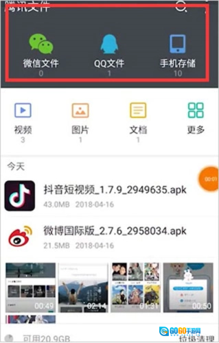 2、 微信、QQ中接收的所有文件单独分类展现