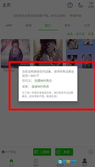 双方设备必须连接在同一局域网中,可以是自己创建的热点、他人创建的热点,或者连接到相同的路由器。