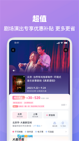 3、涵盖各类演出,像歌舞剧、相声专场这类知名品牌的活动都在覆盖范围内。