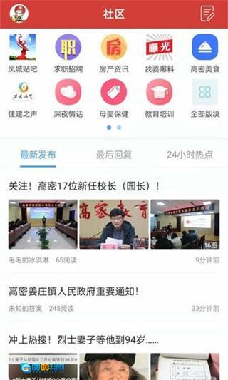 1. 开启高密信息港,轻点底部导航栏中的社区选项,从而进入社区页面。