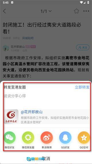 5、于分享选项里挑选分享渠道,从而完成帖子的分享操作。