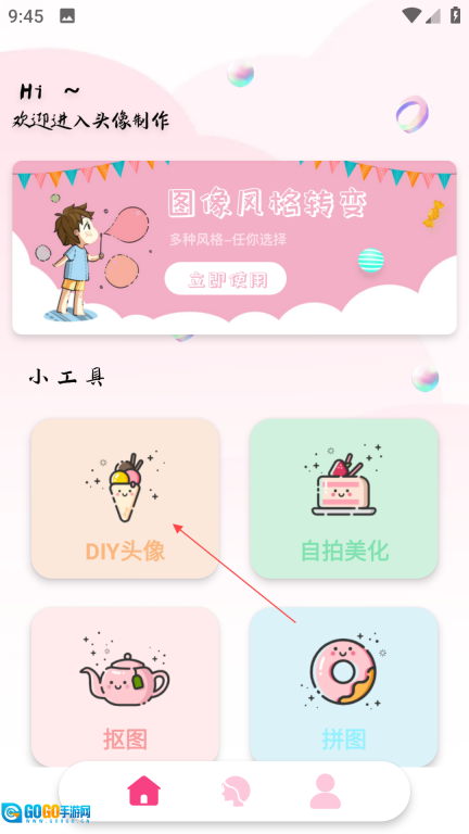 3、来到首页,点击【DIY头像】图标,导入头像图片。