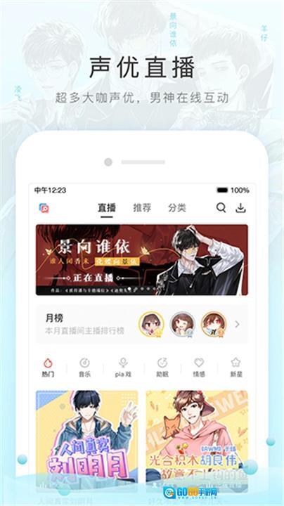 汇聚了中日知名CV、二次元大咖、段子手等领域的主播,可以与他们进行语音连麦互动,还能尝试成为主播,享受被打赏和搭讪的乐趣。