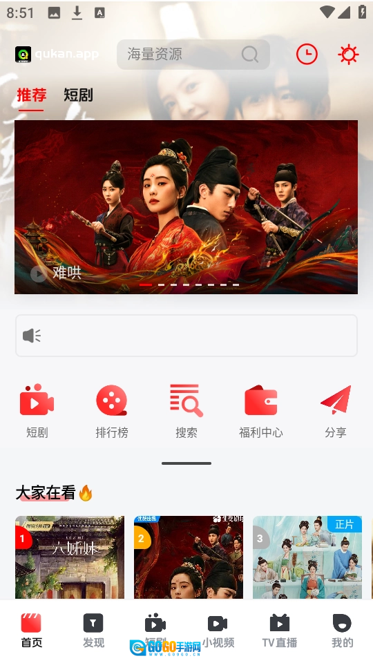 趣看视频是一款相当不错的影视播放软件,这里提供了海量的影视内容,用户可以根据自己的喜好来选择观看播放,能够为广大用户朋友带来更加优质的观影体验,有喜欢的追剧的朋友不要错过了,现在就来感受吧!