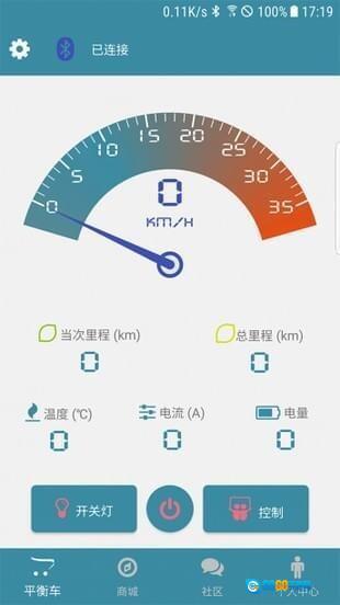 用户可以使用这款软件查询你的骑行数据信息,能够查询到平衡车的当前速度、电量、总里程、卡路里等参数,能够实时的查询关于平衡车的状况;