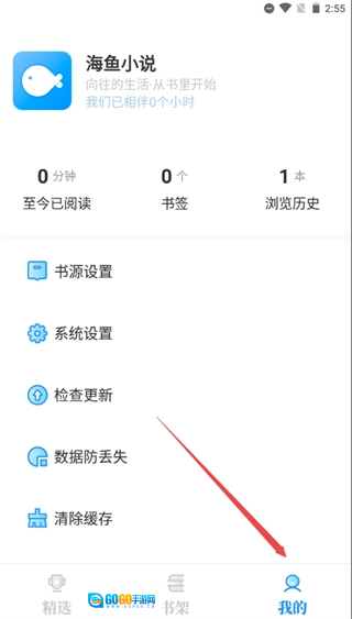 1、并打开海鱼小说之后点击右下方进入我的页面。
