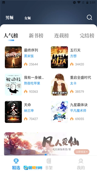 3、【小说榜单】每天会在首页为大家展示人气榜、新书榜等各类榜单;