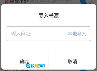 4、按照提示在输入框里粘贴网址,然后点击确定按钮,这样就完成书源的导入了。