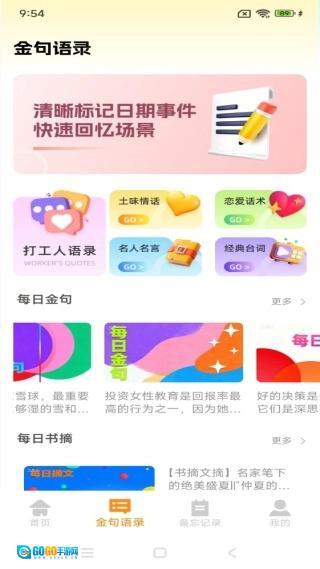 金句语录专区,多种阅读模式等都有,句子更新快。
