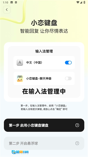 打开小恋键盘应用,进入其首页后,就能直接体验小恋键盘的功能了。