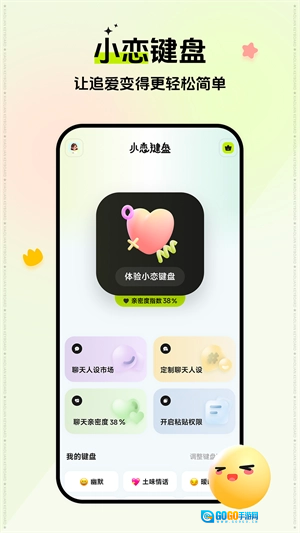这款恋爱辅助键盘软件特别好用,它具备智能预测和快捷回复功能,能让你在聊天时体验到极大的便捷。同时,软件还会持续优化,提供丰富的个性化设置选项,全方位满足你的各类需求。