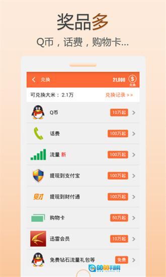 3、丰富奖品等你兑换:Q币、话费、集分宝、迅雷会员等应有尽有,还支持提现至支付宝、财付通;