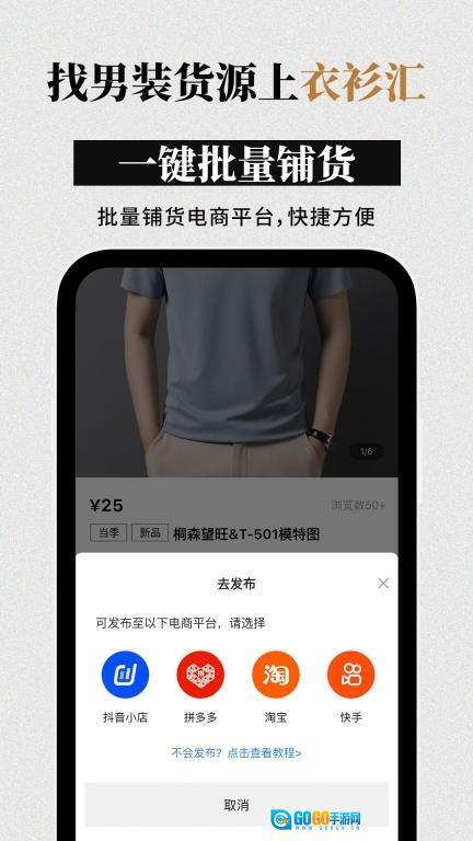 衣衫汇男装网批是面向男装批发商、网络分销商与实体门店的高效货源平台,它凭借浙江濮院服装产业带的优势,汇聚了1800余家男装制造商的货源信息。借助这个平台,用户能轻松获取大量男装商品资源,还能享受到一键铺货、代发服务以及极速发货等便捷功能,有效降低了创业的门槛,助力用户实现无忧经营。