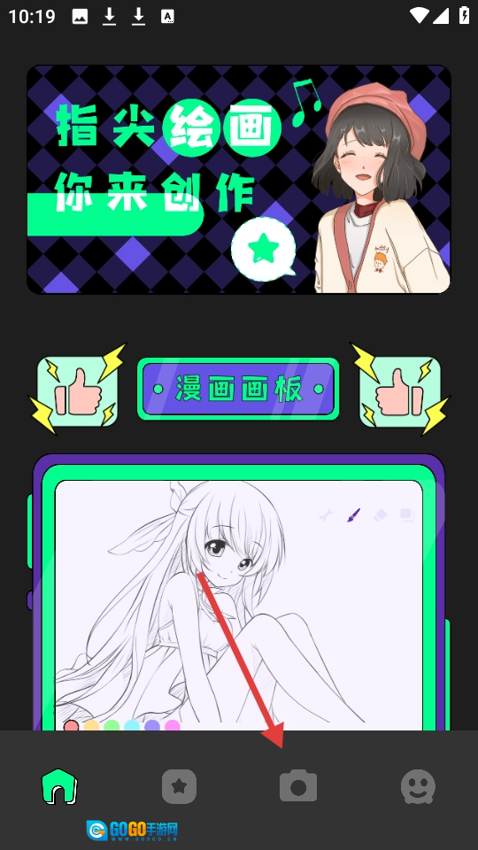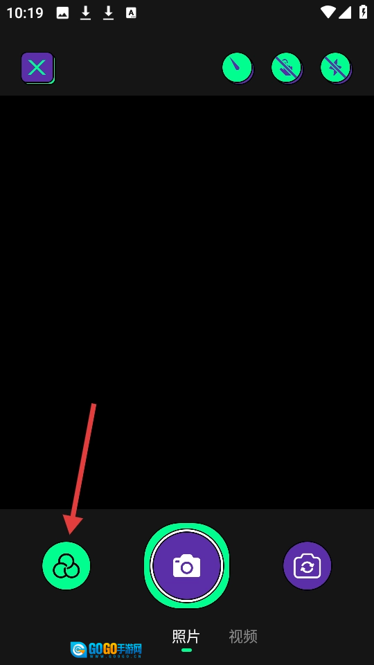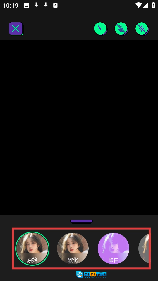 打开软件后,点击底部的相机图标,即可进入与拍摄相关的功能界面。