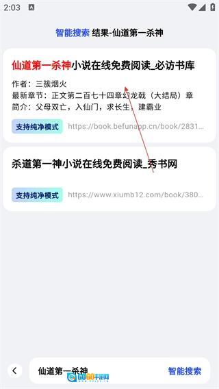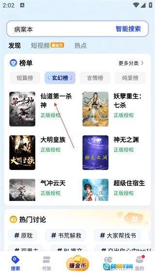 在应用主页面的榜单里找到并选择【玄幻榜】,接着点击目标小说(例如【仙道第一杀神】),就能进入智能搜索结果页。