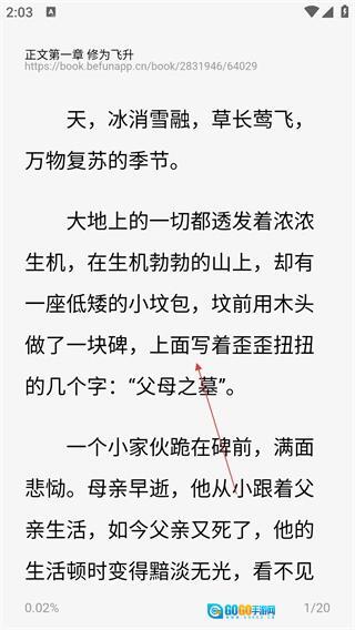 在小说阅读页面,能够开启小说内容的阅读(例如【仙道第一杀神】的第一章内容)。