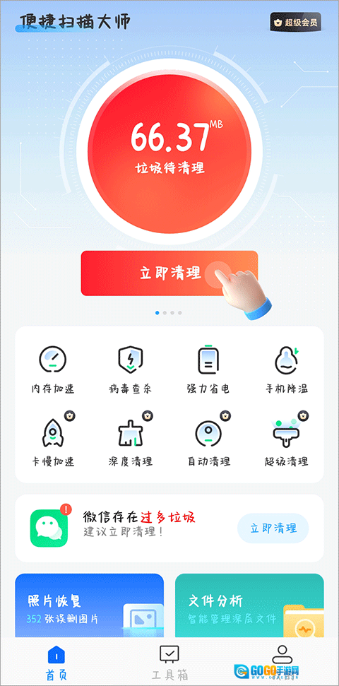 便捷扫描大师的其他功能同样值得关注,像内存加速、病毒查杀、手机降温、照片恢复和网络测速等,这些工具在用户的日常生活中实用性都很强,几乎都会派上用场!有需要的朋友不妨来试试!
