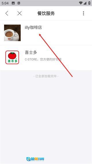 3、在餐饮服务列表页面,点击“illy咖啡店”这一条目,就能进入该店铺的详情页,查看其品牌背景、服务特色等相关信息。