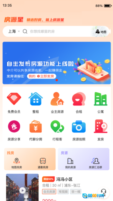 进入平台首页后,既能浏览到丰富多样的租房房源信息,也能借助定位功能通过地图查找房源。