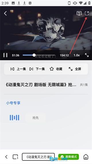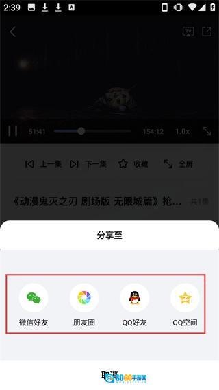 在《鬼灭之刃剧场版无限城篇》的播放页面,点击右上角的分享图标,就能打开分享选项弹窗。