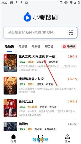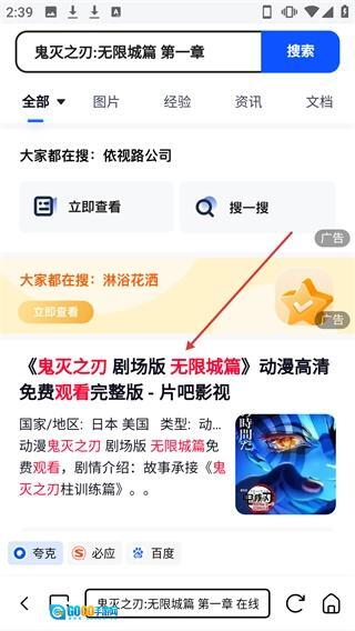 在小夸搜剧首页的热播榜单里,点击【鬼灭之刃:无限城篇第一章】对应的内容条目,就能触发搜索功能。