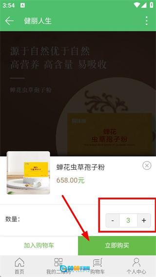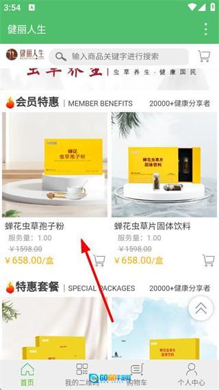 1、进入健丽人生首页后,点击“孢子粉系列”选项,即可进入该系列商品的列表页面。