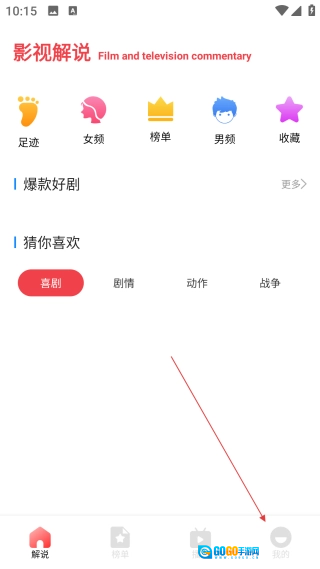 在影视解说页面,点击底部的【我的】选项,即可进入个人中心的功能界面。