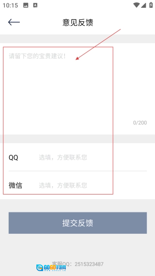 在意见反馈页面,请填写【建议内容,并补充QQ或微信等可用于联系的信息】。