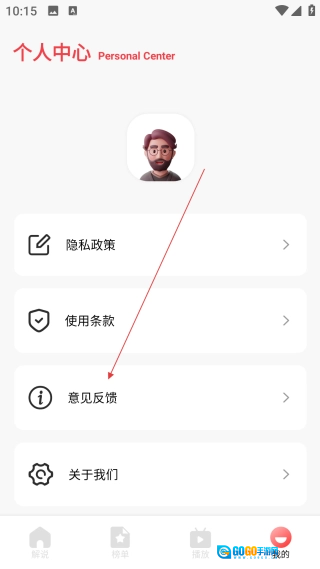 在个人中心页面,点击【意见反馈】选项,即可进入意见反馈的填写界面。