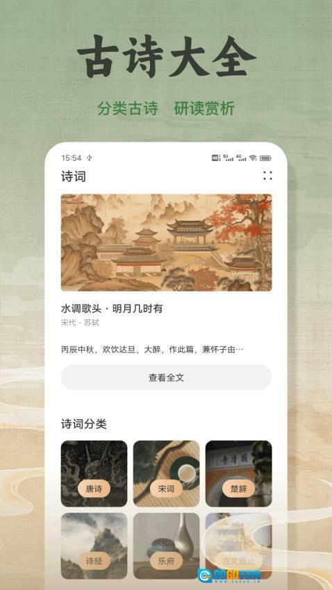 精读经围绕传统诗词文化传承与系统学习的需求,致力于突破传统诗词学习中资源分散、理解难度大、体验形式单一的问题,汇聚了唐诗宋词、乐府诗经、楚辞等众多经典诗词文献,搭建起从基础阅读到深度赏析的完整学习框架,助力用户领略诗词的韵律美感与文化底蕴。