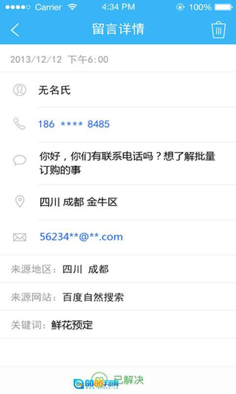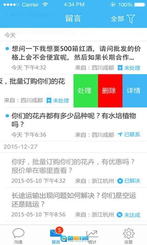 3、留言支持详情查看、多种状态处理和按状态筛选;