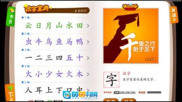 2、识字宝典,您能够借助它手动引导孩子进行复习,该宝典以每6字为一组,每组搭配4个相应的游戏;