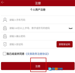 3、在注册页面依次填写手机号、密码和验证码,之后点击注册按钮即可完成操作。