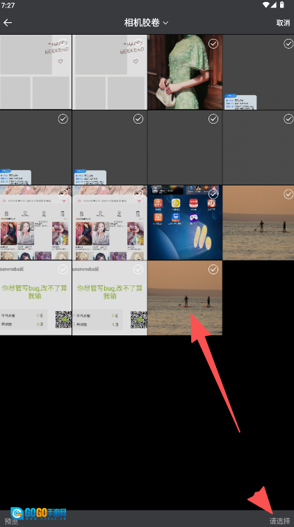 2、从相册选择需编辑的图片(如划桨板照片)进入。