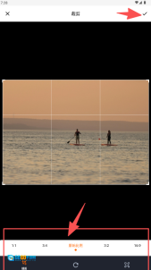 3、在裁剪界面借助九宫格辅助线来调整构图,点击右上角的对勾图标完成确认,系统会自动保存处理好的图片。