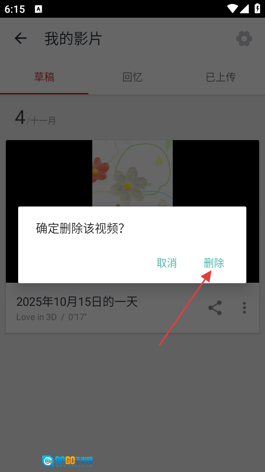 4、在确认框中,点击【删除】按钮,可删除该视频。