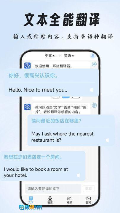 环旅翻译器是一款功能强大的手机翻译软件,所有翻译操作都精准又简单,支持实时翻译功能,无论是文字、语音、拍照还是图片翻译,都能流畅便捷地完成,为用户提供优质的服务体验。翻译内容详细全面,一键即可轻松翻译,操作简单直观。