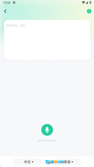 3、进入语音翻译页面后,说出你要翻译的内容,就能快速完成翻译了。