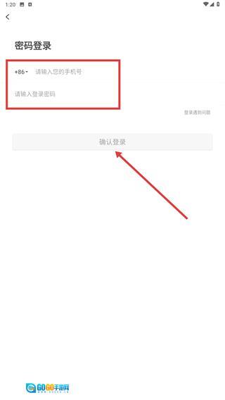 3、进入【密码登录】页面后,依次填写【请输入您的手机号】和【请输入登录密码】这两个输入框,随后点击【确认登录】按钮,即可完成账号密码登录操作。