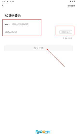 2、进入【验证码登录】页面,在【请输入您的手机号】输入框中填写手机号,点击【获取验证码】按钮,待收到验证码后将其填入对应输入框,最后点击【确认登录】按钮,即可完成验证登录流程。